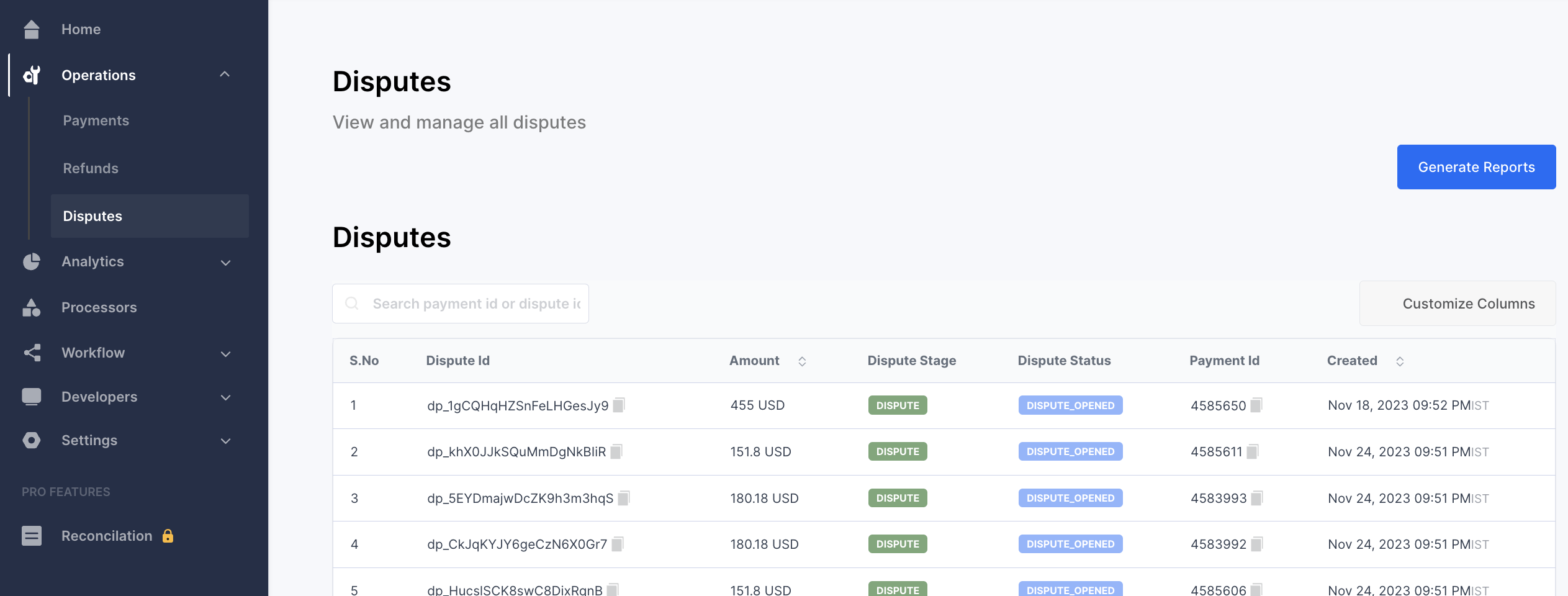 2. Generating Dispute Reports