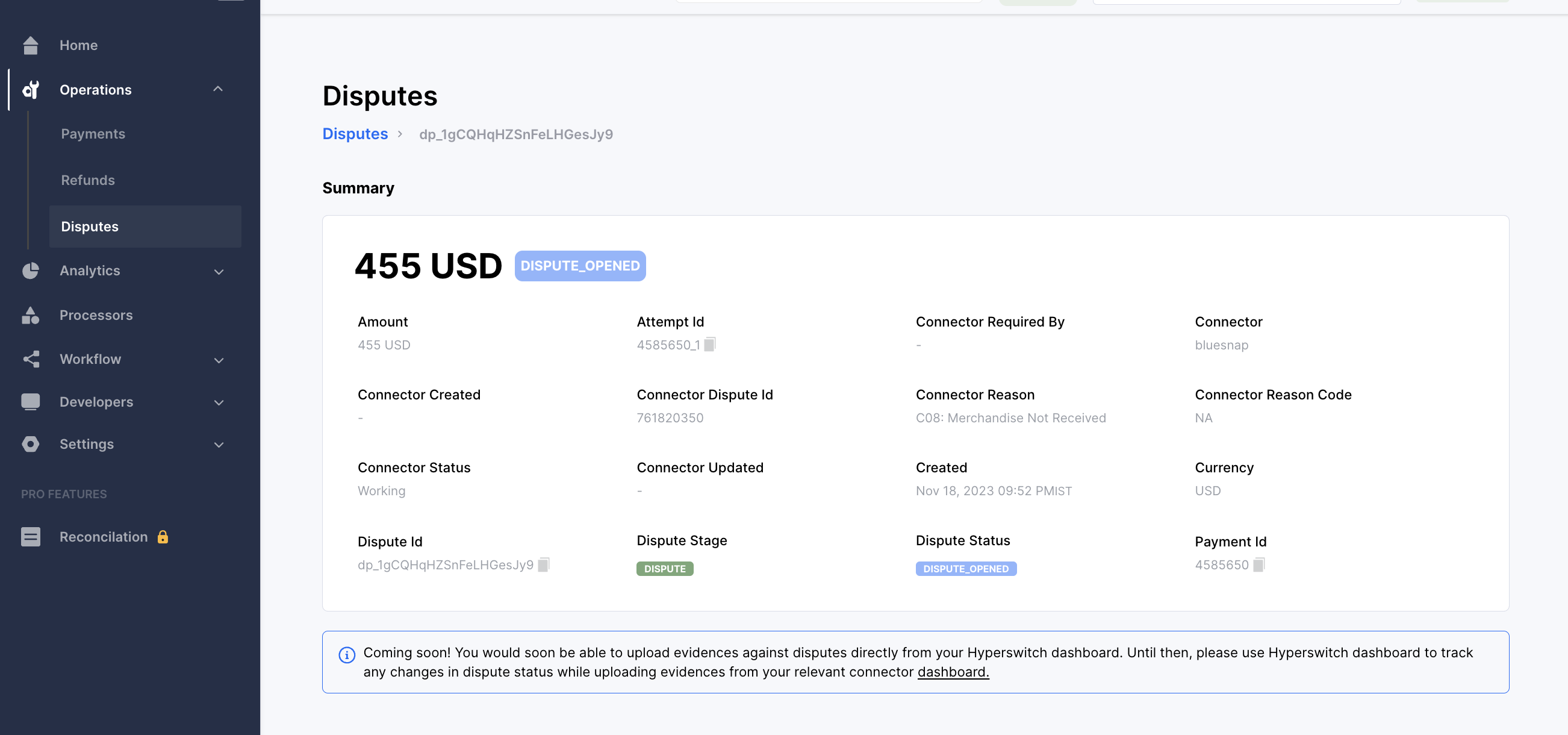 You can view all your disputes by going to Operations -> Disputes section on your OrchestratorX dashboard