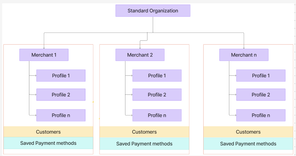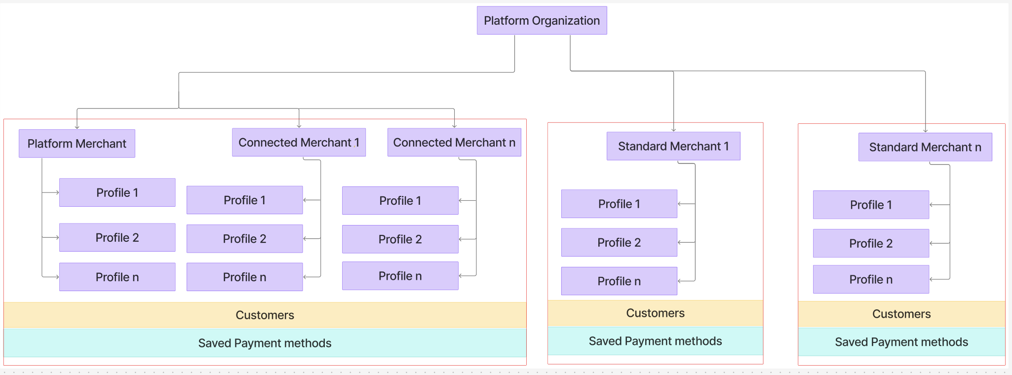 - Standard merchants maintain isolated Customers and Payment Methods, even though they belong to the same Platform Organization.