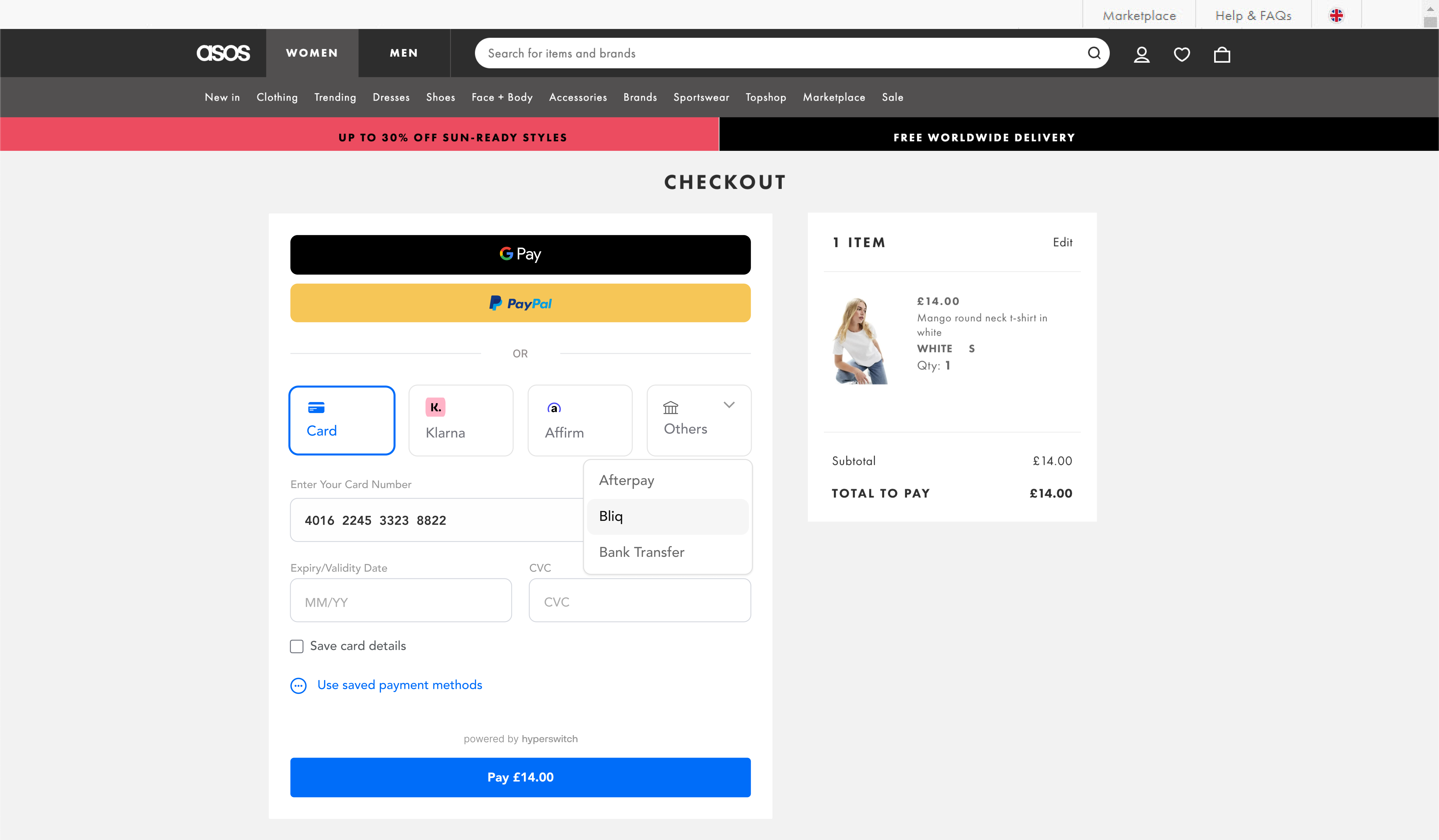 The Express Checkout Element gives you a single integration for accepting payments through one-click payment buttons. Supported payment methods include ApplePay, GooglePay and PayPal.