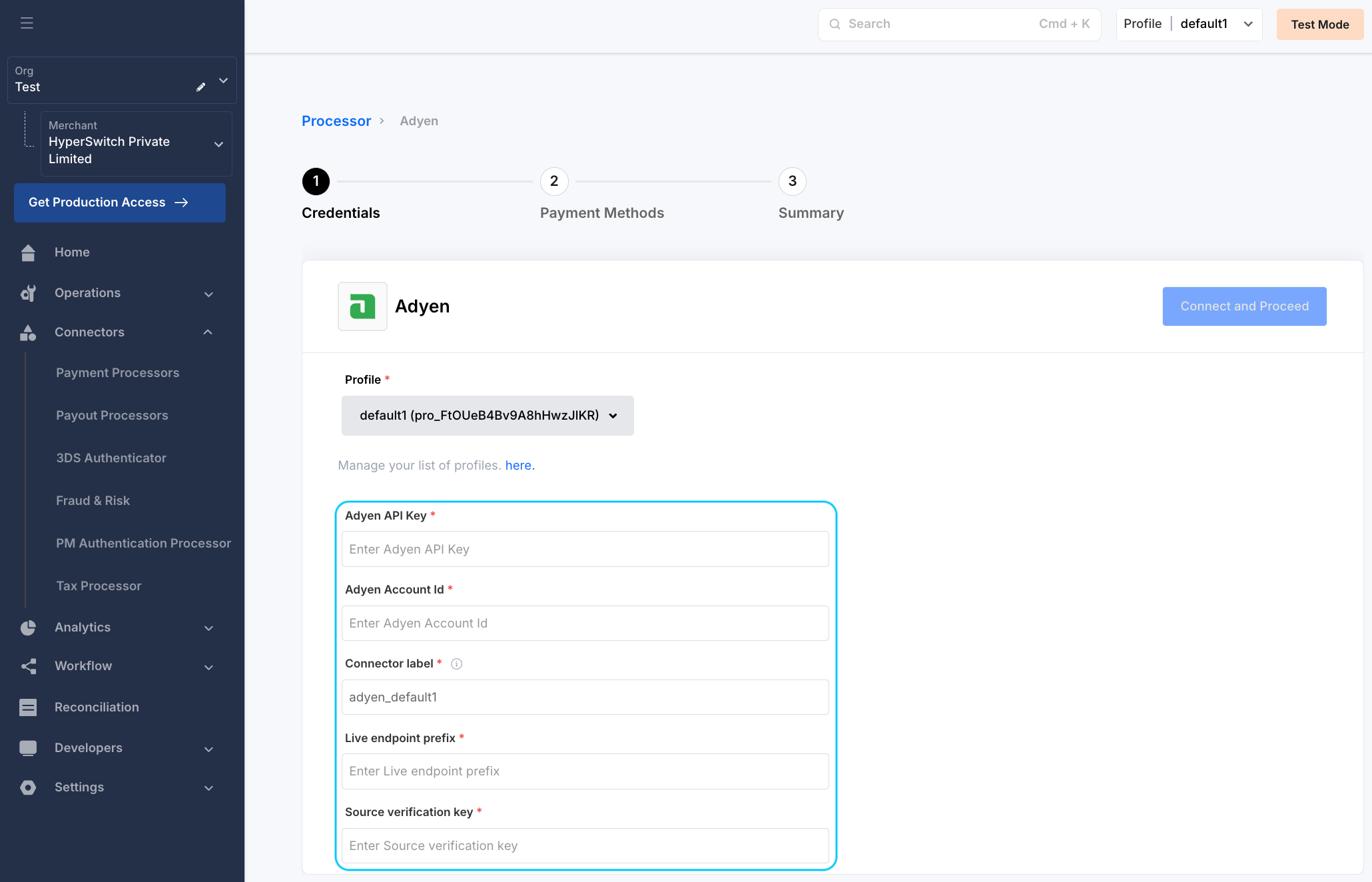 • Enter the required credentials for the selected connector obtained during signup or from the connector dashboard.
