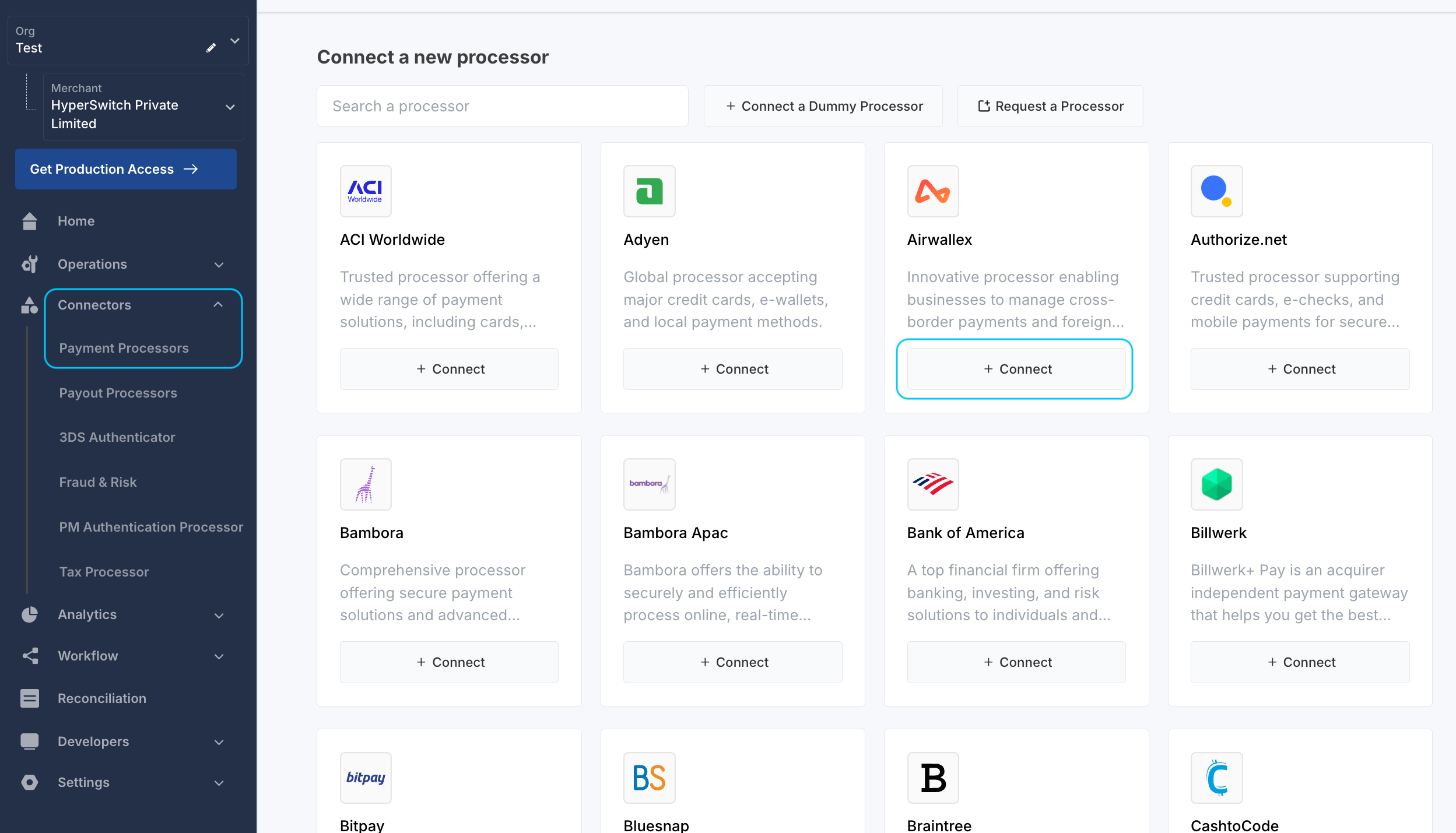 • Select the desired connector using the '+ Connect' button.