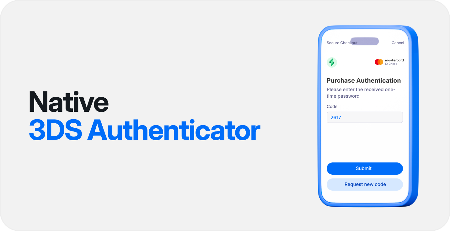 - Native Authentication on mobile - Provide your customers a seamless, native 3DS OTP experience, instead of clunky web-views.