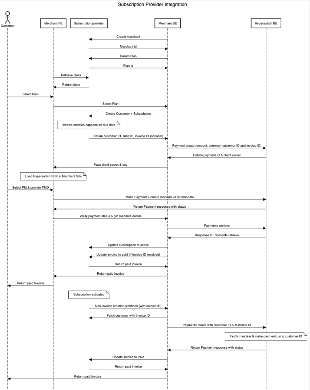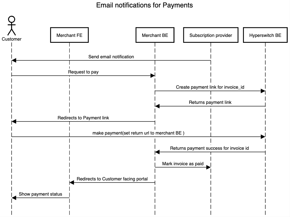 • Once the payment is successful, the merchant should mark the invoice as paid with their subscription provider and return the invoice to the customer