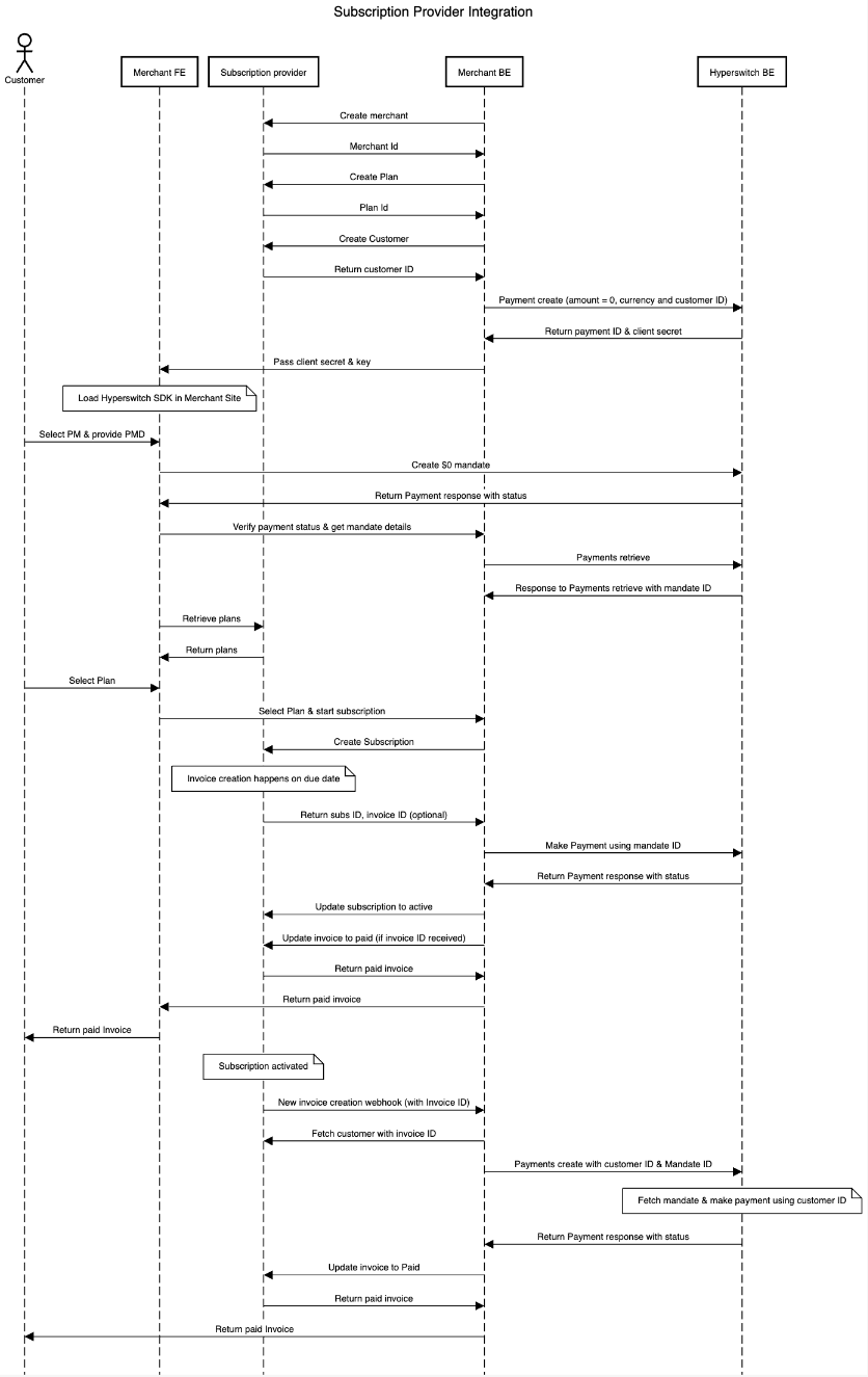 • Merchant will create a customer with the subscription provider